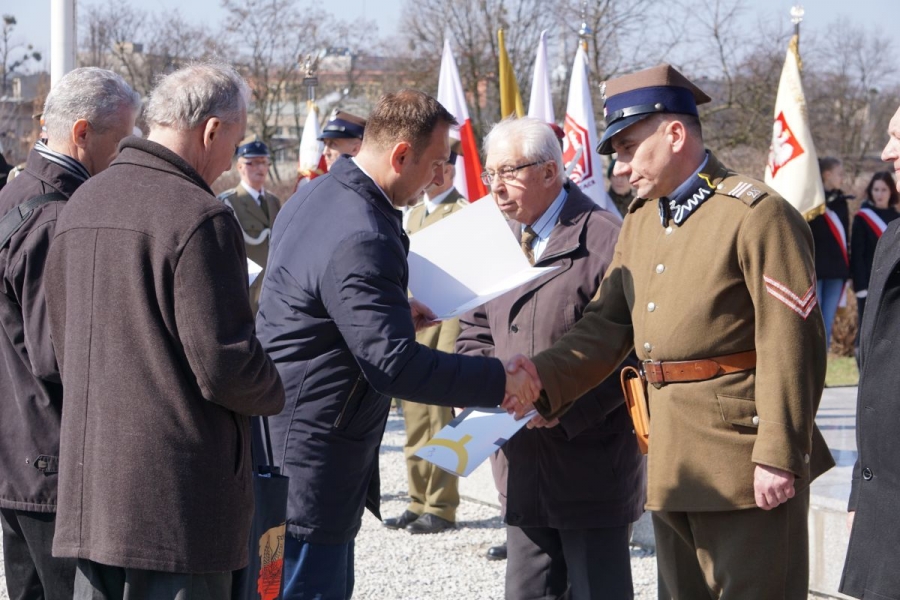 Podczas uroczystości przekazano także dyplomy gratulacyjne dla osób wyróżniających się w pielęgnowaniu pamięci o Armii Łódź i złożono kwiaty pod pomnikiem.