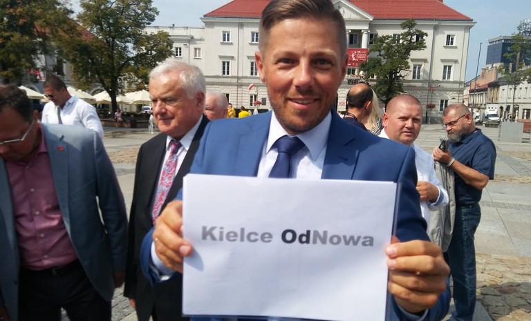 "Kielce OdNowa" to hasło wyborcze kandydata KKW SLD Lewica Razem na prezydenta Kielc, Marcina Chłodnickiego.